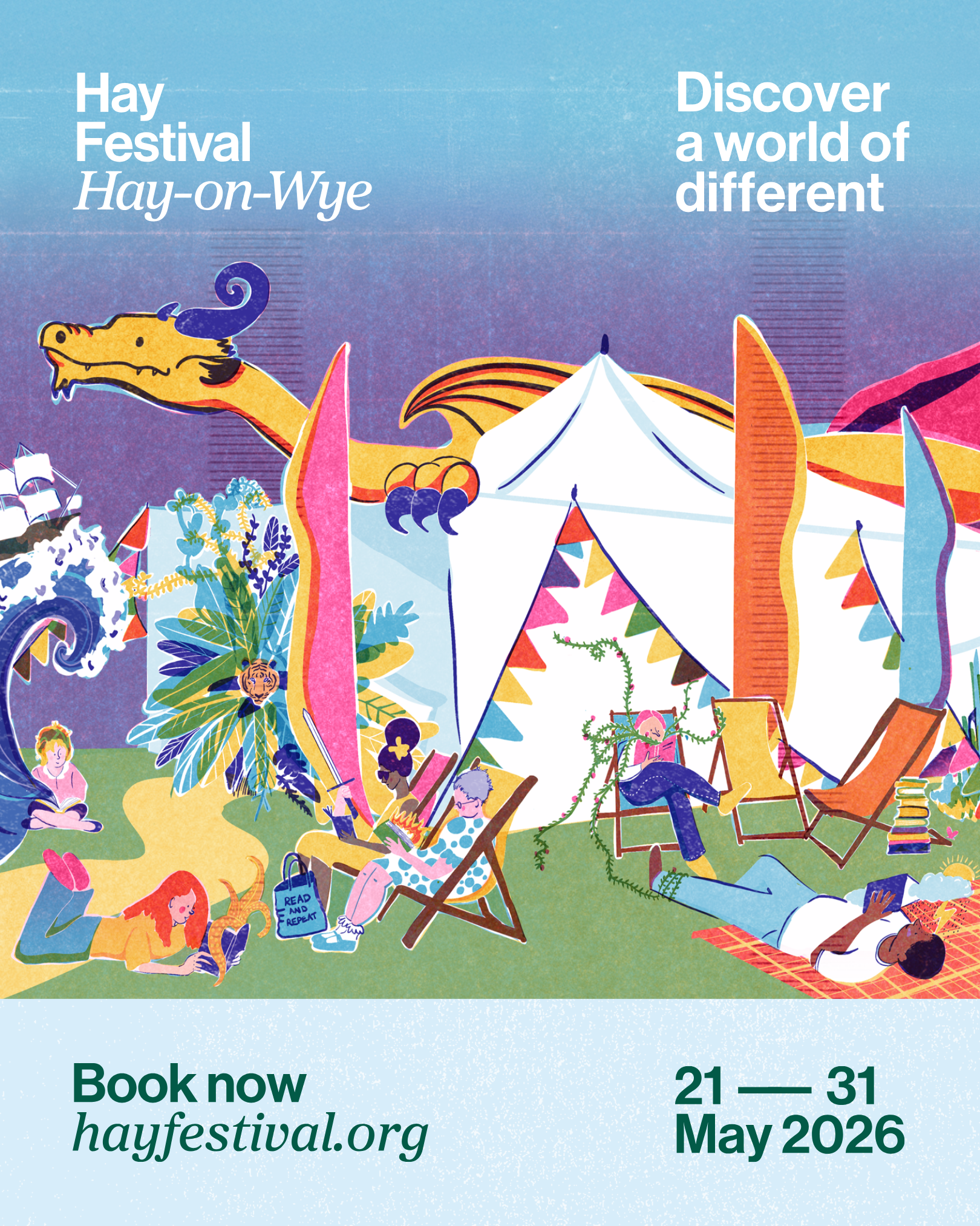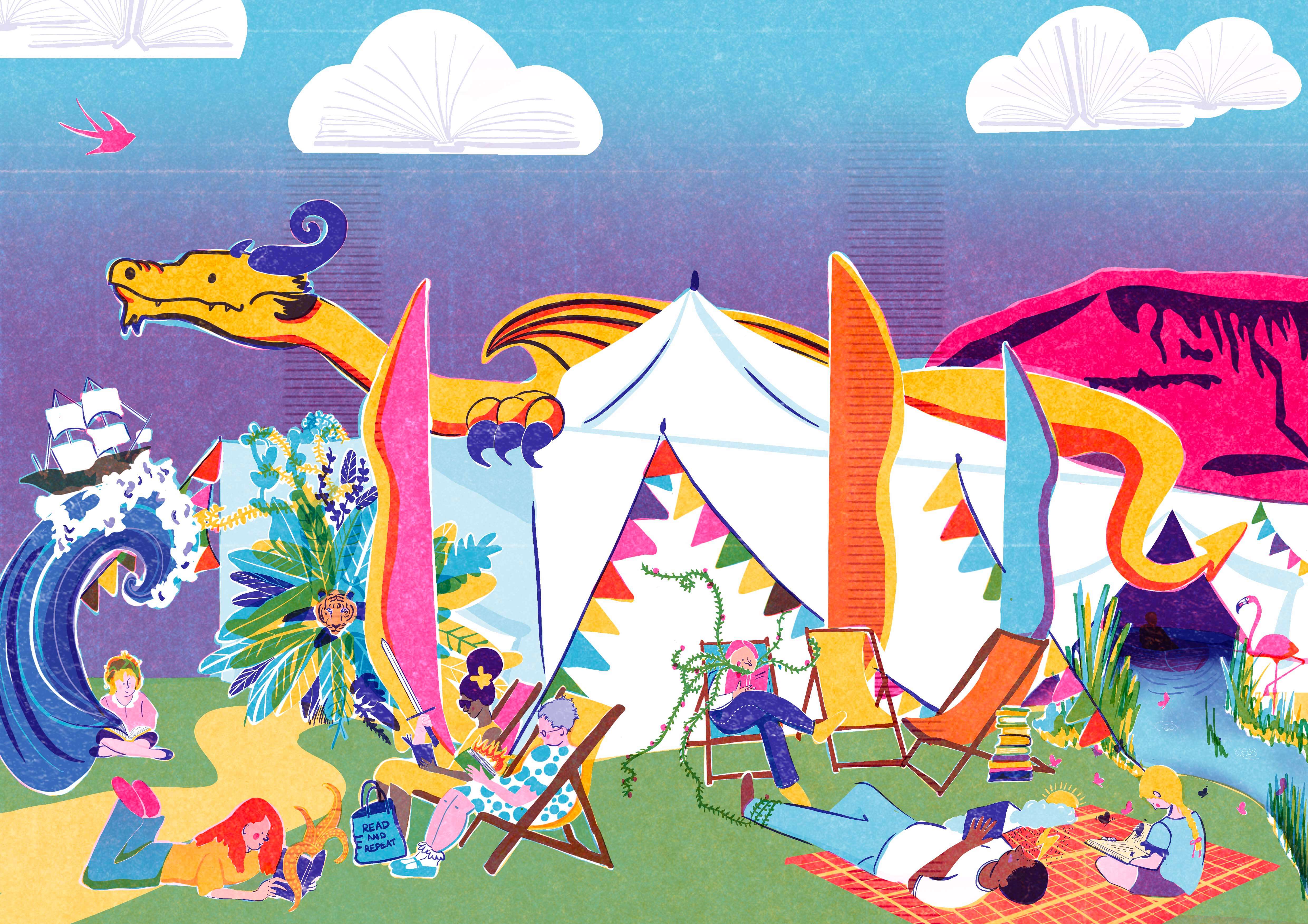 As part of the residency, I was commissioned to create the illustration for the festival programme cover, developing artwork that captured the lively, creative atmosphere of the event. The design aimed to reflect the spirit of curiosity, storytelling, and conversation that runs through the festival, while bringing my own colourful and playful illustration style to such a well-known cultural event.